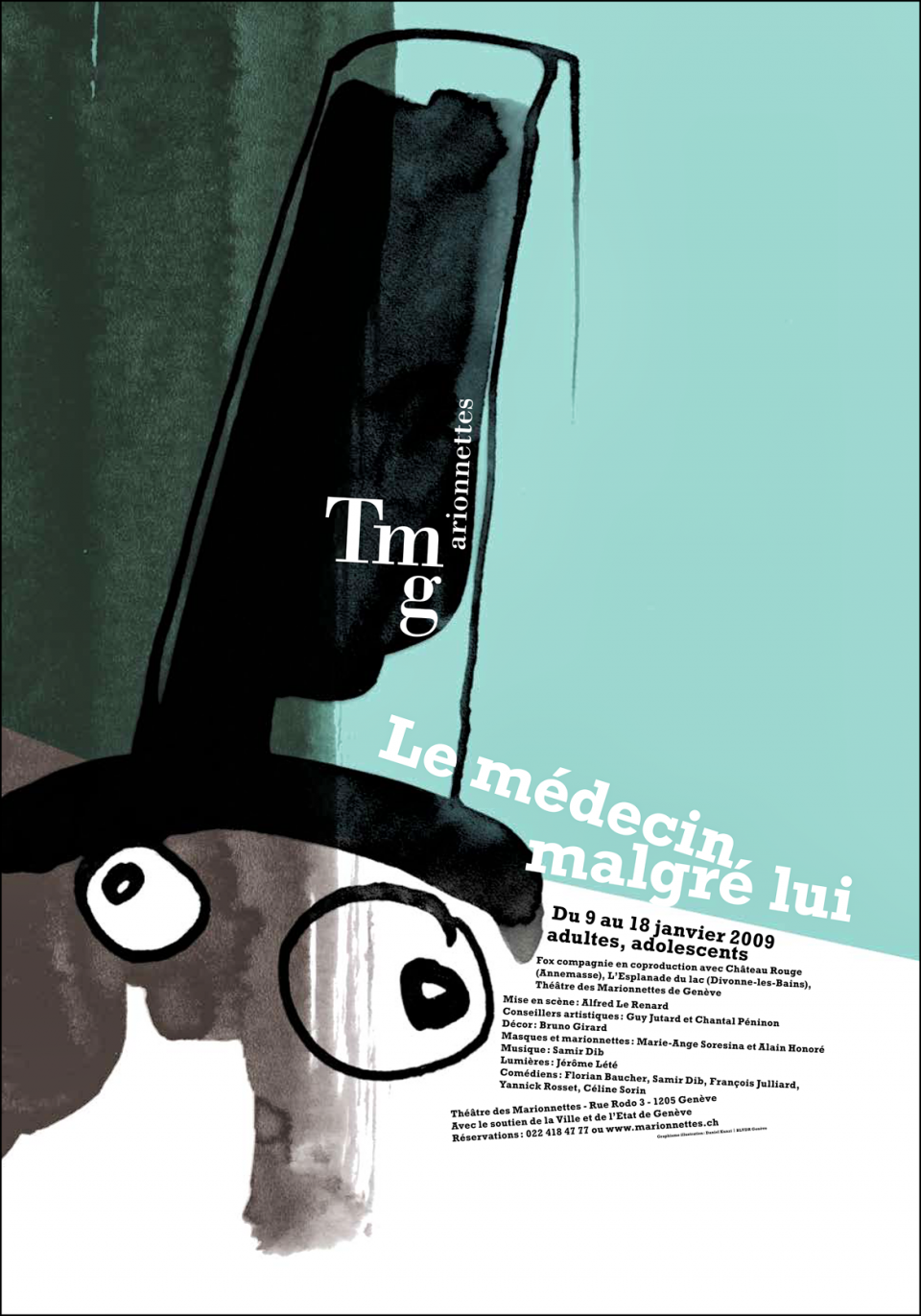 Création et réalisation d'affiches pour le Théâtre des marionnettes de Genève. 2008 à 2009.