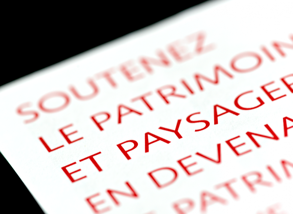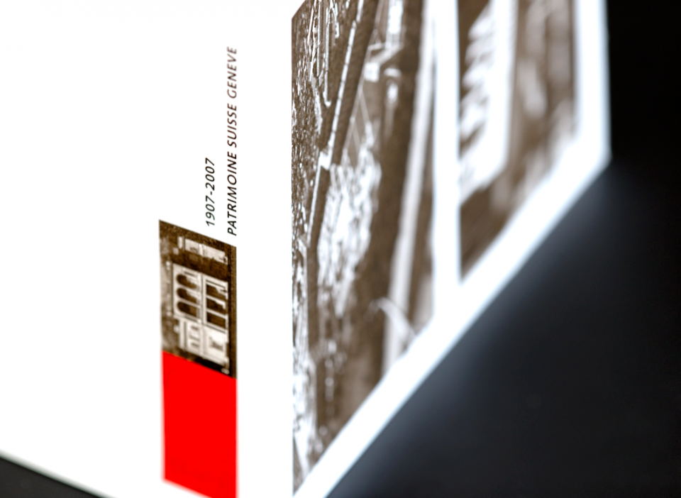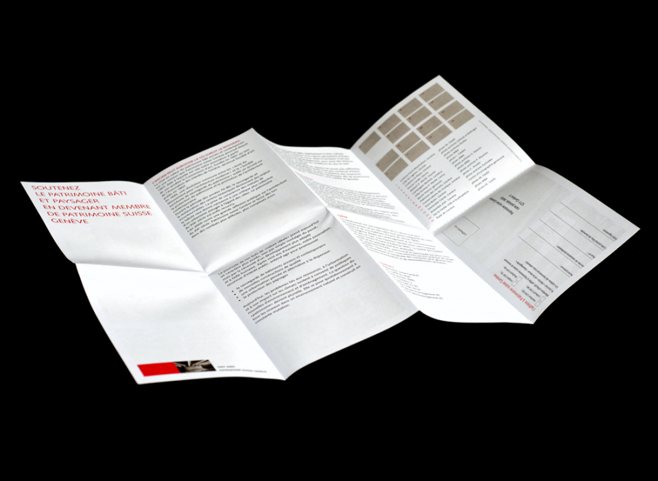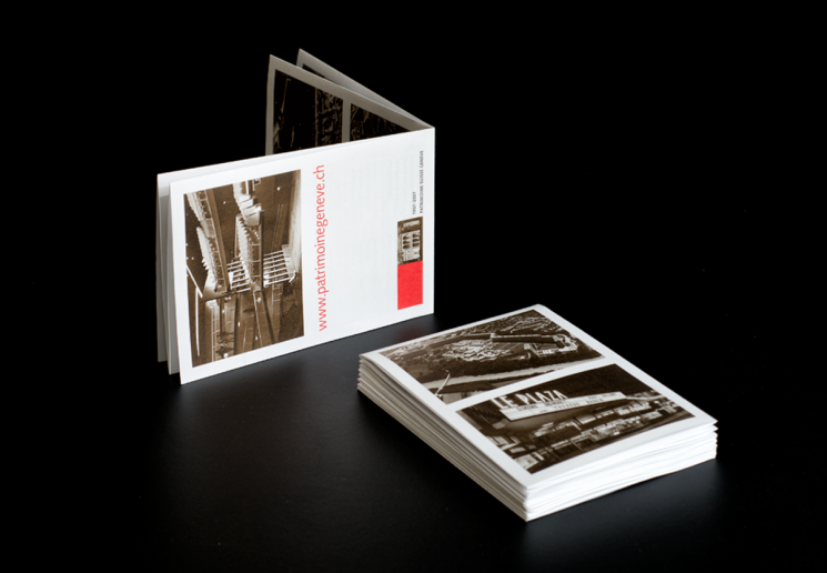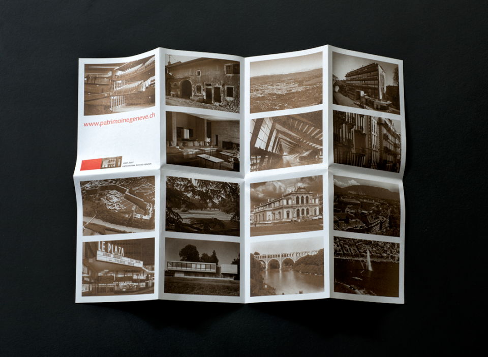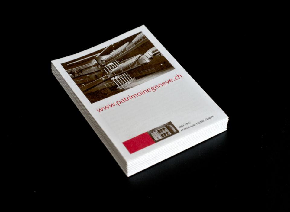 Réalisation d'une affichette / dépliant anniversaire pour Patrimoine Suisse Genève.