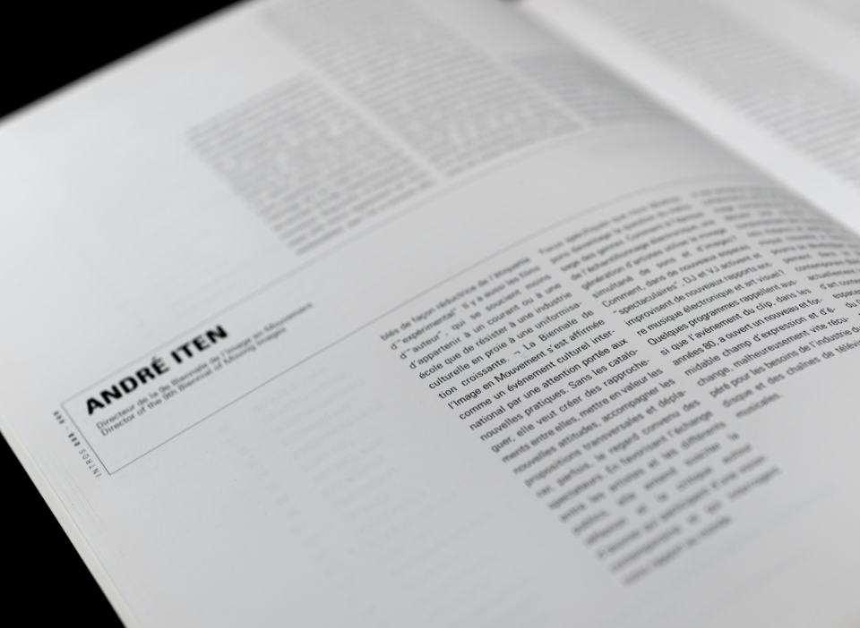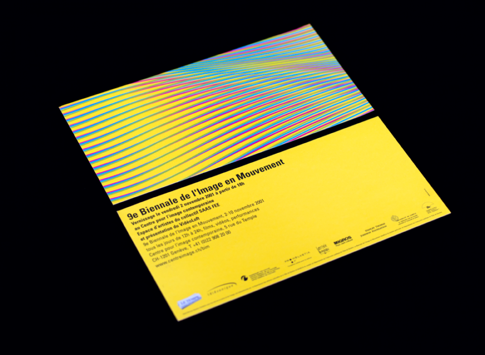 Création de l'identité visuelle de la 9e Biennale de l'Image en Mouvement pour le Centre de l’Image Contemporaine. Supports d'informations, signalétique, publications, catalogue d'exposition....