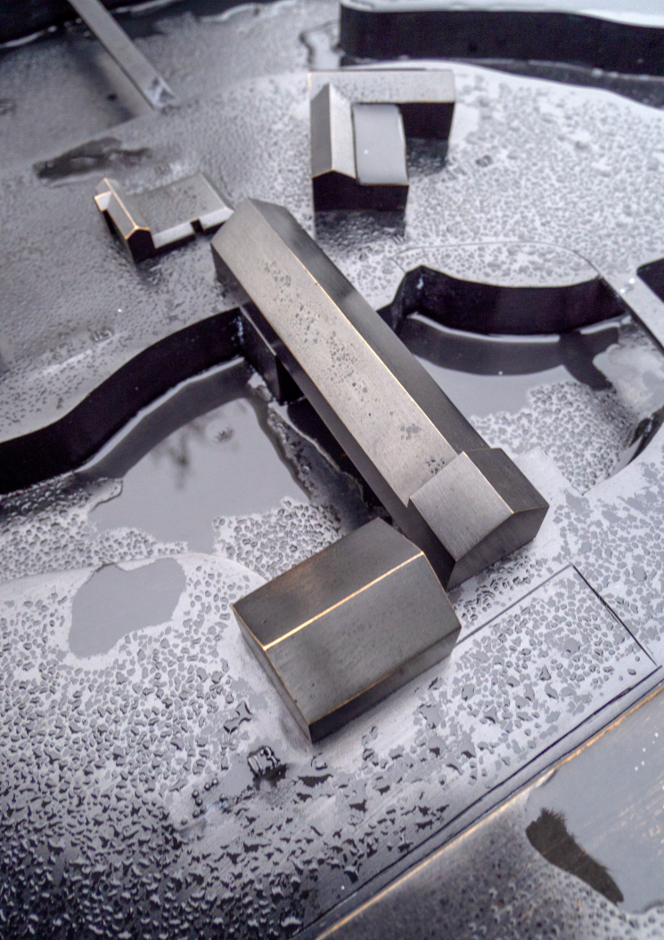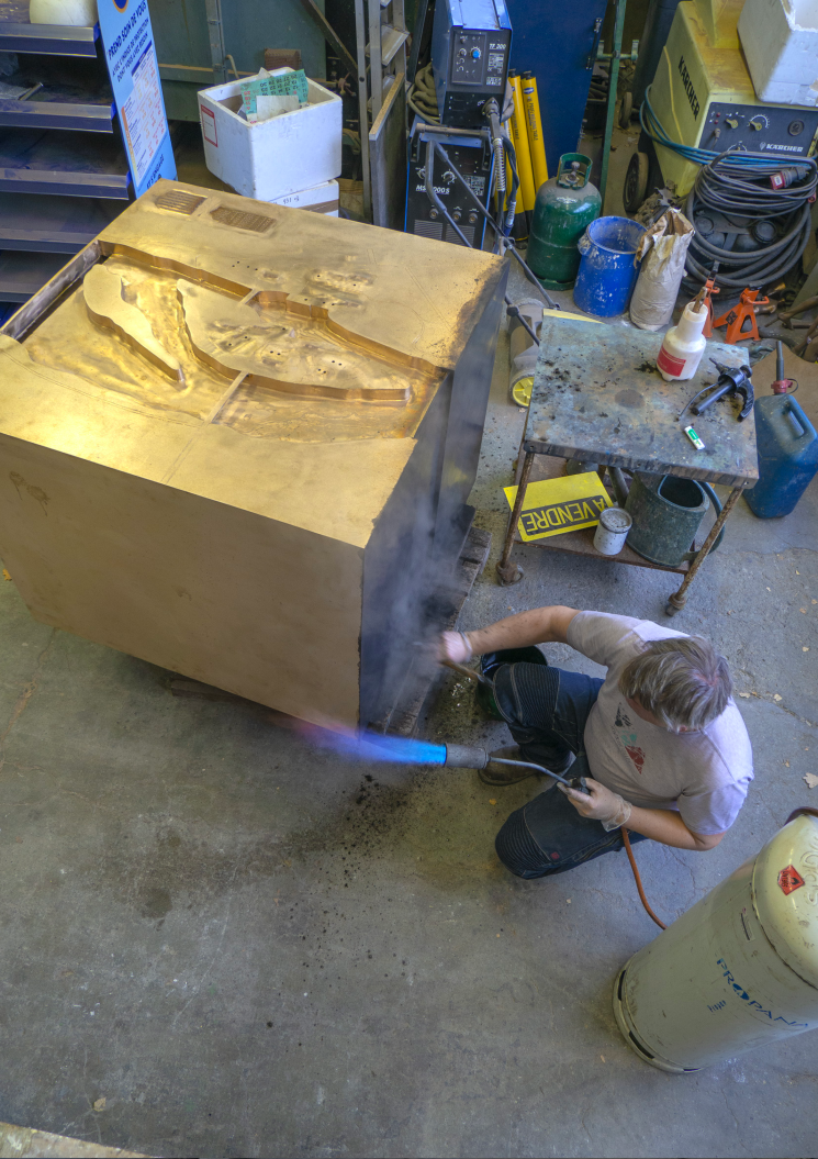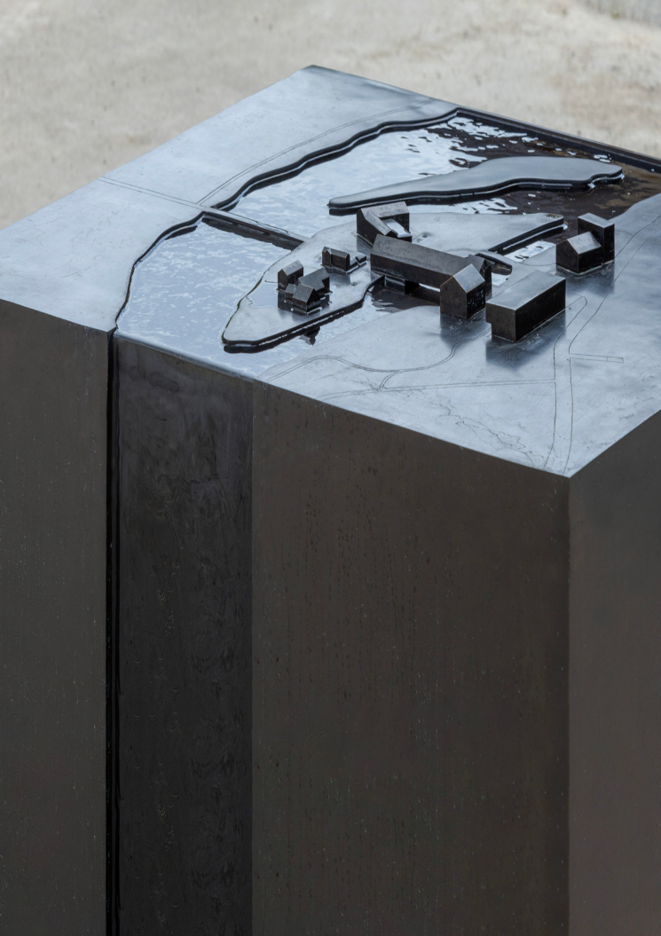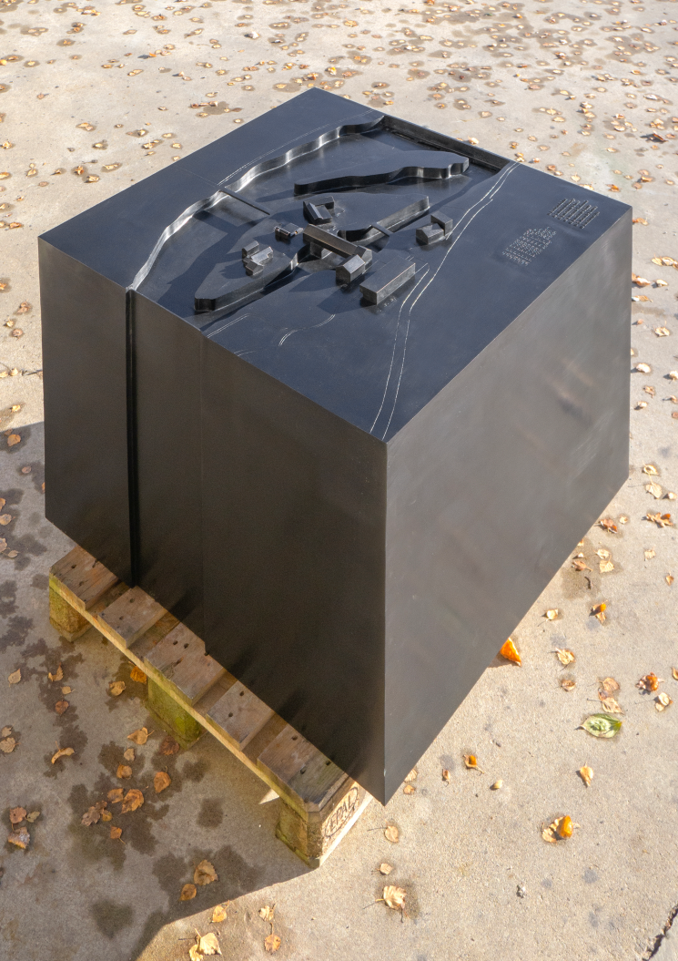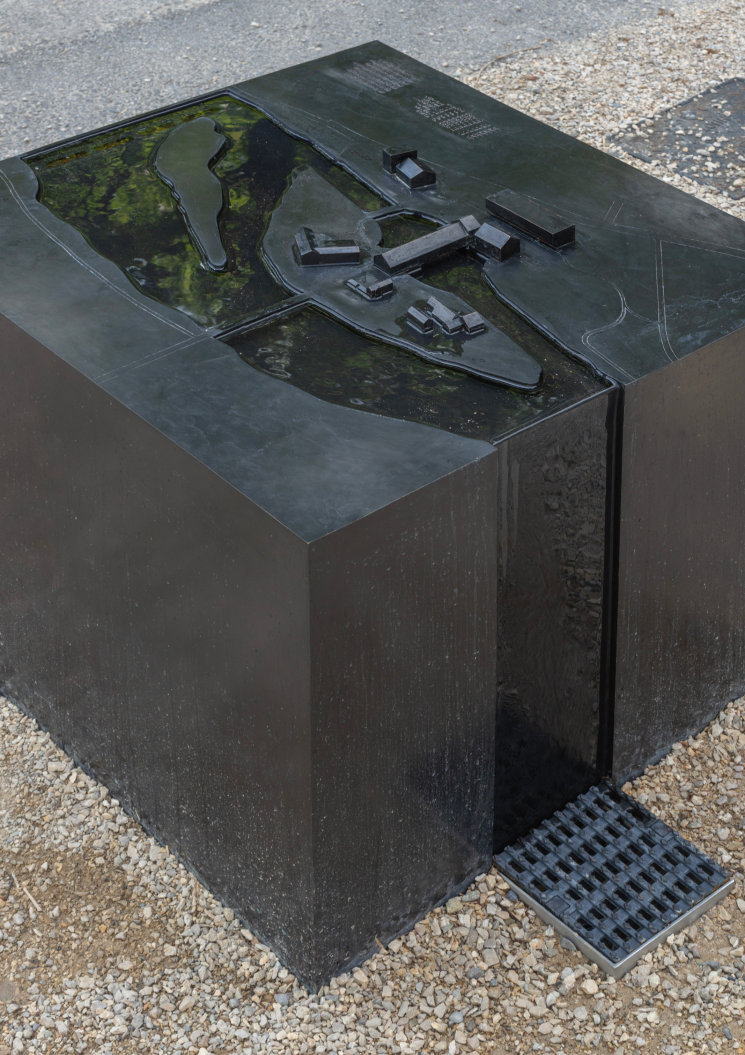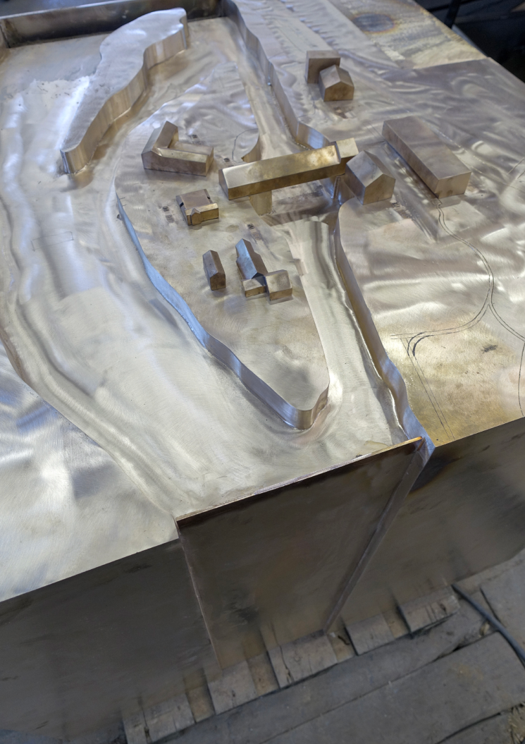 Création et réalisation d'une fontaine d'orientation sur le site des berges de Vessy. Réalisée en bronze, elle reprend le plan du site en 3D et comprend des textes en braille.