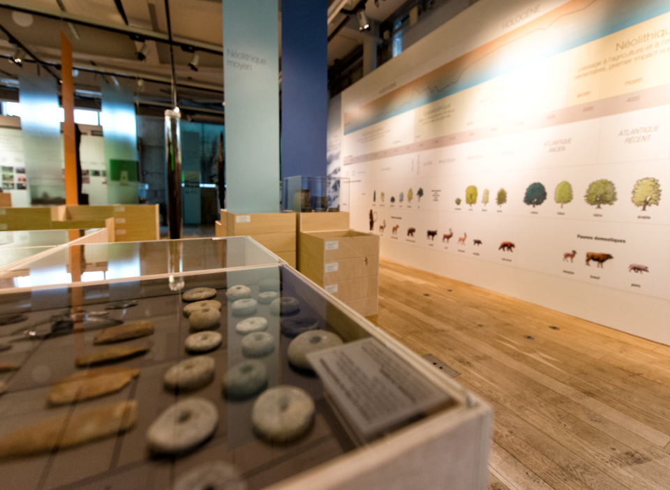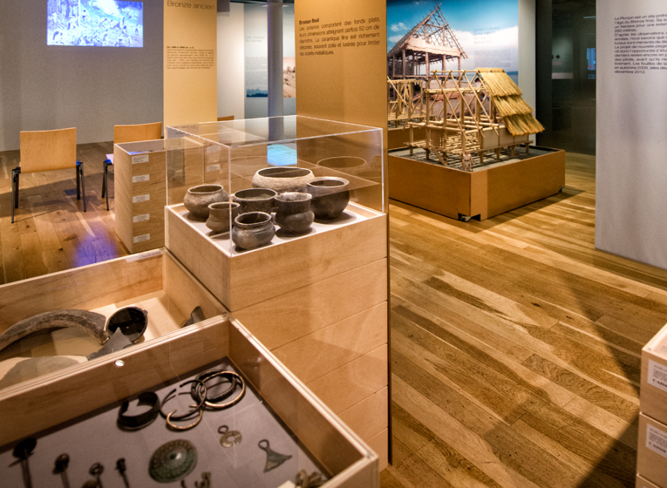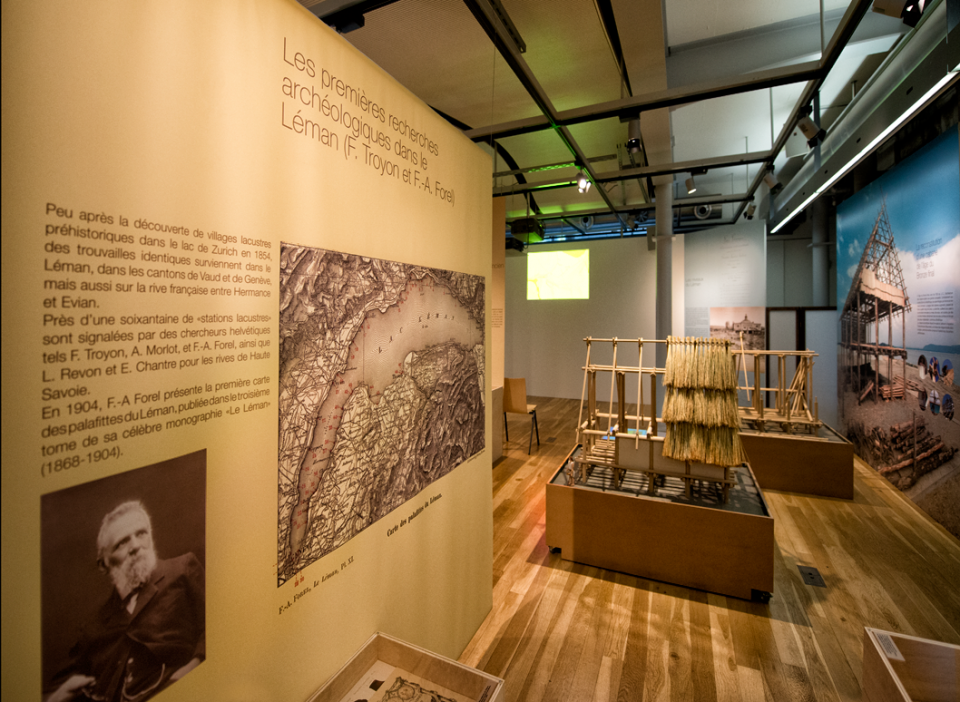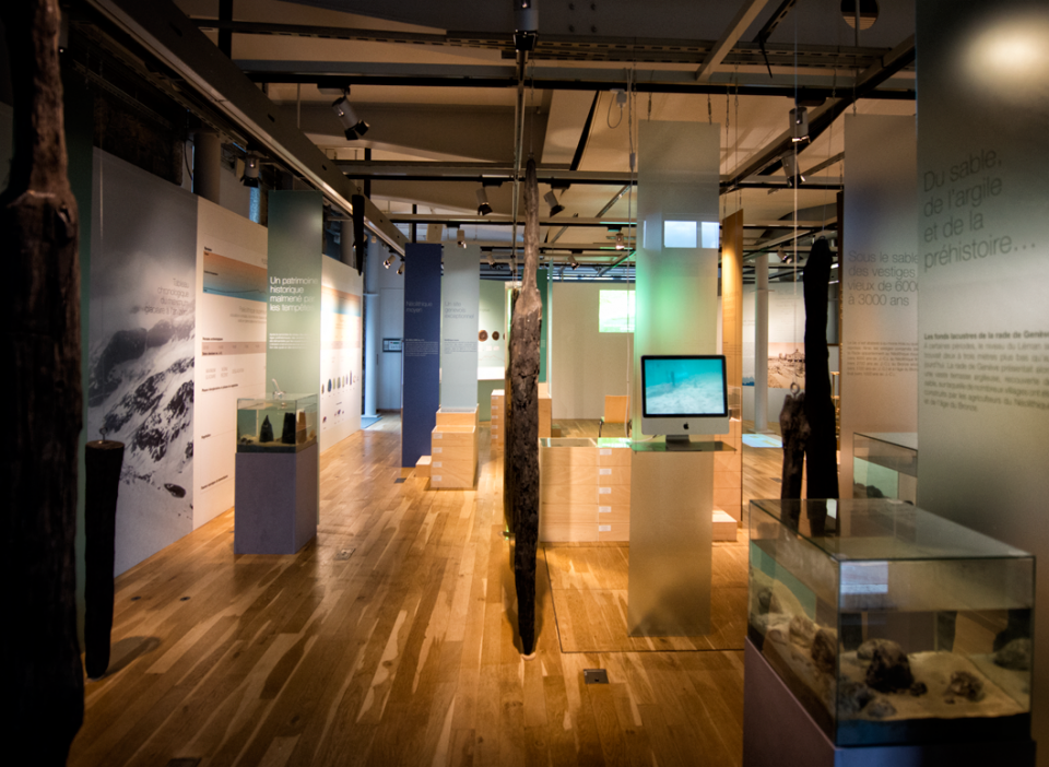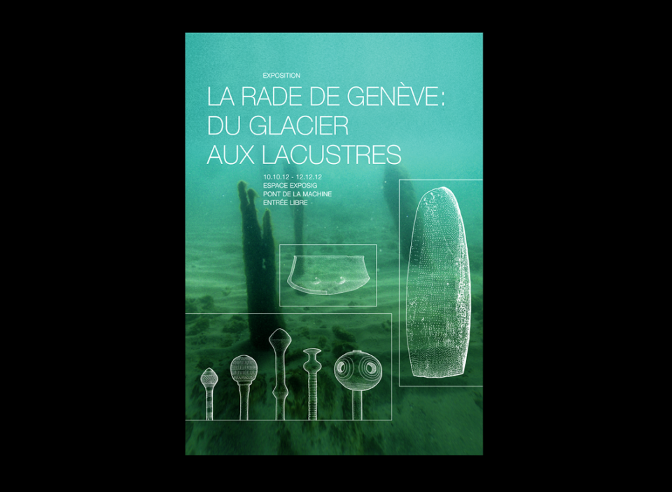 Scénographie de l'exposition « La rade de Genève : du glacier aux lacustres ». En collaboration ave l'archéologue Pierre Corboud, l'Université de Genève, l'Institut F.-A. Forel, les SIG, l'Etat de Genève, la Ville de Genève et le MAH.