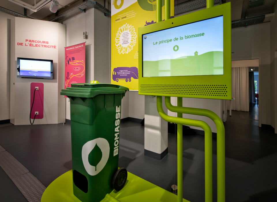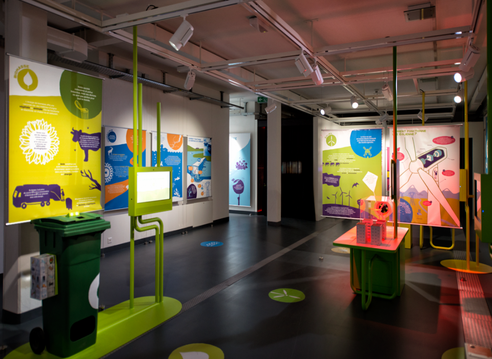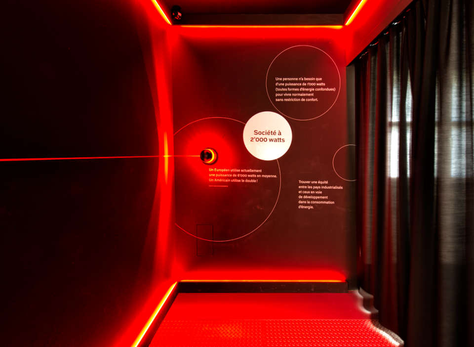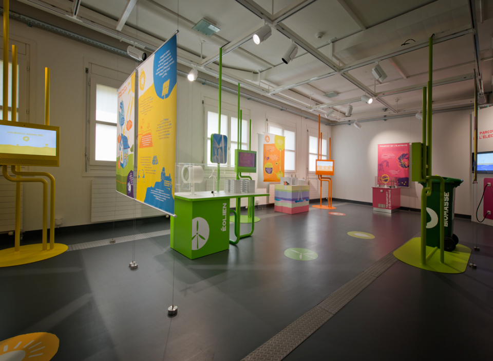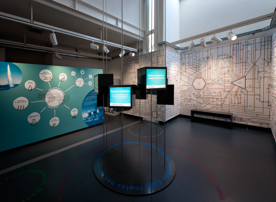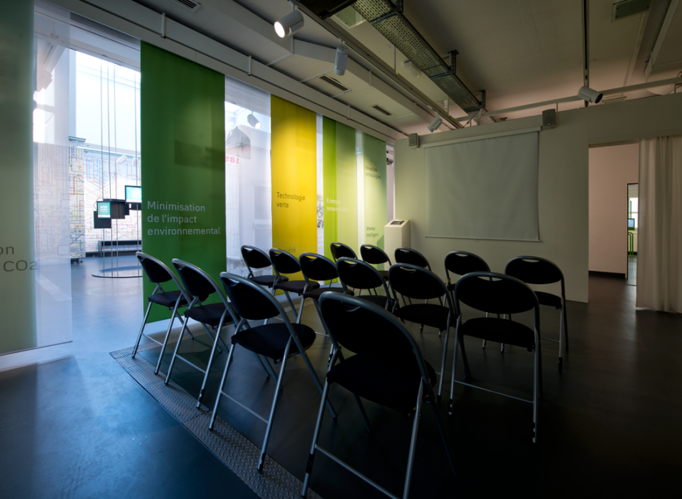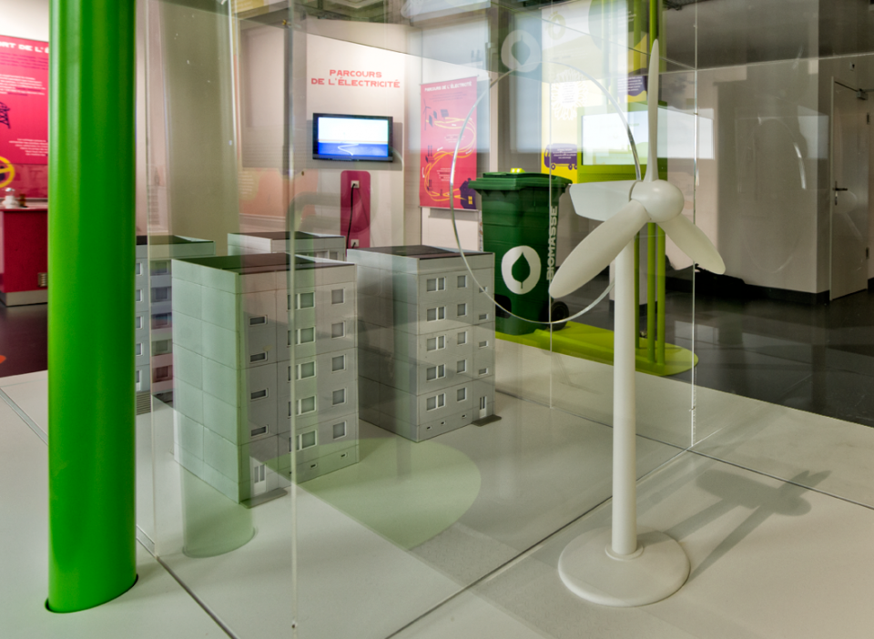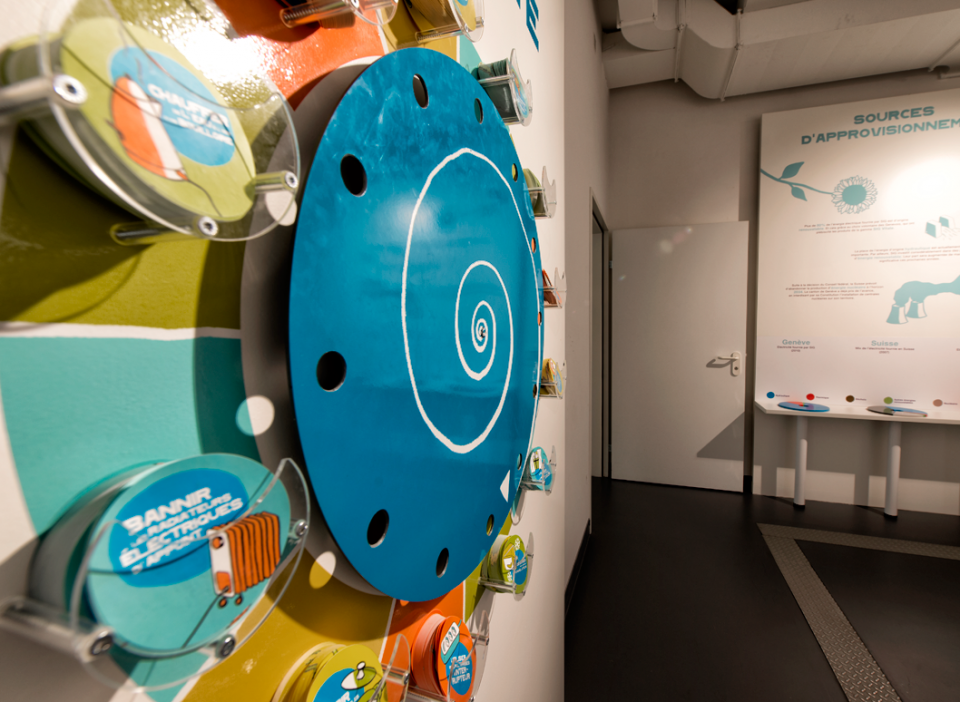 Scénographie pour le « Showroom SIG » dédié aux énergies renouvelables. Pavillon de l'énergie à Verbois.