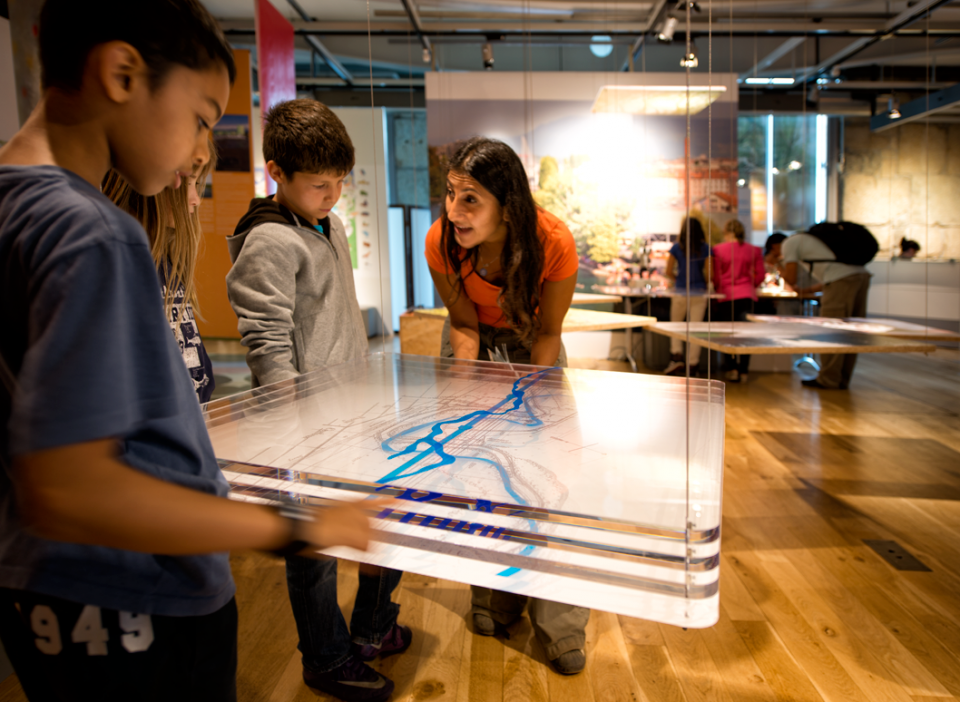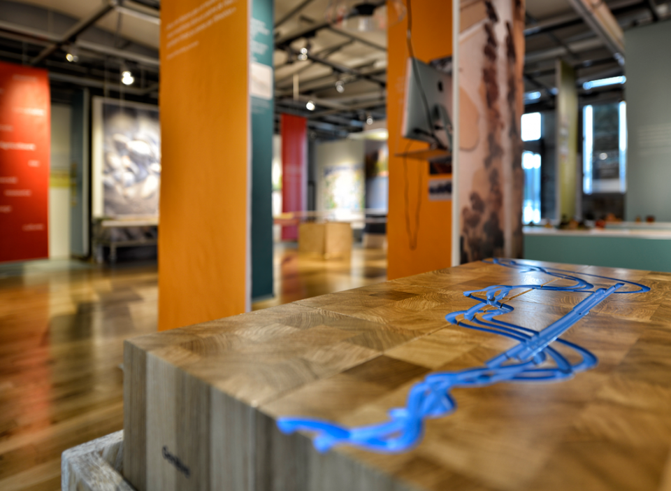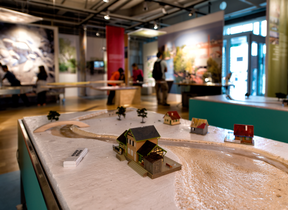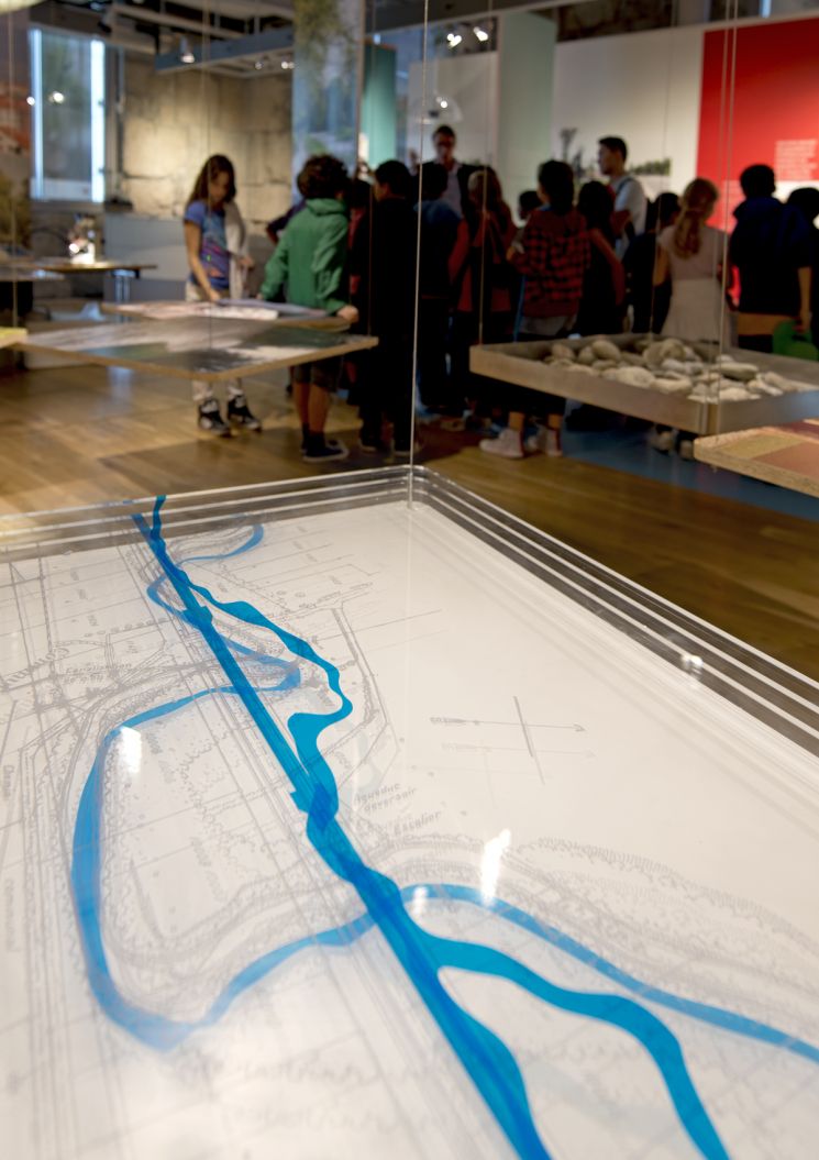 Scénographie, supports d'information et graphisme de l'exposition « Regards sur nos rivières ». En collaboration avec l'Etat de Genève, le Service de renaturation des cours d'eau et les SIG.