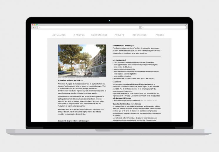Site web dynamique avec présentation des projets immobiliers de l'entreprise.