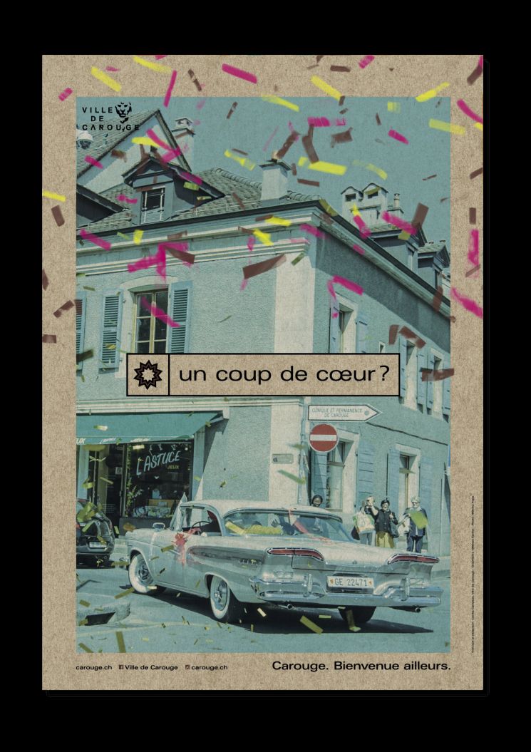 Création de la campagne d’affichage 2019 au format F4 et F12 pour promouvoir le tourisme de la Ville de Carouge. www.carouge.ch/carouge-bienvenue-ailleurs