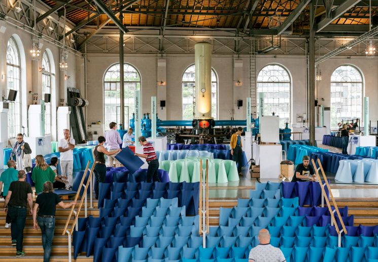 Création de la totalité de l’évènement au Bâtiment des Forces motrices. Développement de l’univers graphique en rapport avec le lieu. Le papier, un art, une passion, matière à émotion… Rencontre effervescente autour du papier dans tous ses états. Concept décliné sur l’ensemble des supports de communications suivants : Mail, save the date, invitation, cahier, étiquettes de bouteille d’eau, cabas, scénographie, signalétique, website et motion. Exposants : Antalis, Arjo Wiggins, Bubu, Cordenons, Fedrigoni, Fischer Papier, GF & Smith, Hinderer+Mühlich, James Cropper, Kapag, Künzli Papier, Kurz, Lana Paper, Lorenz Boegli, Papetiers Montségur, Peyer, Sonderegger, Takeo, Winter.