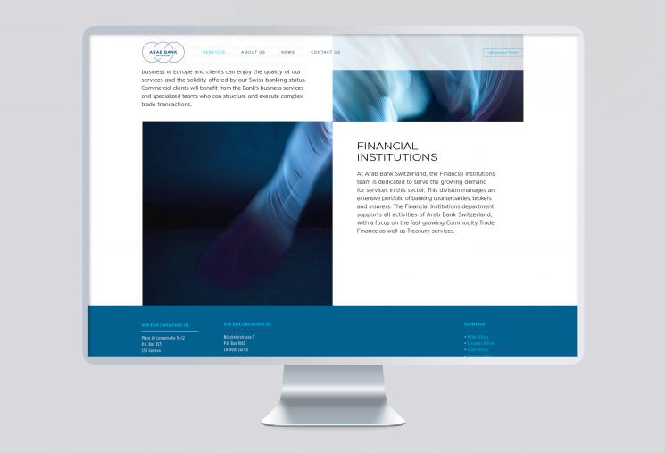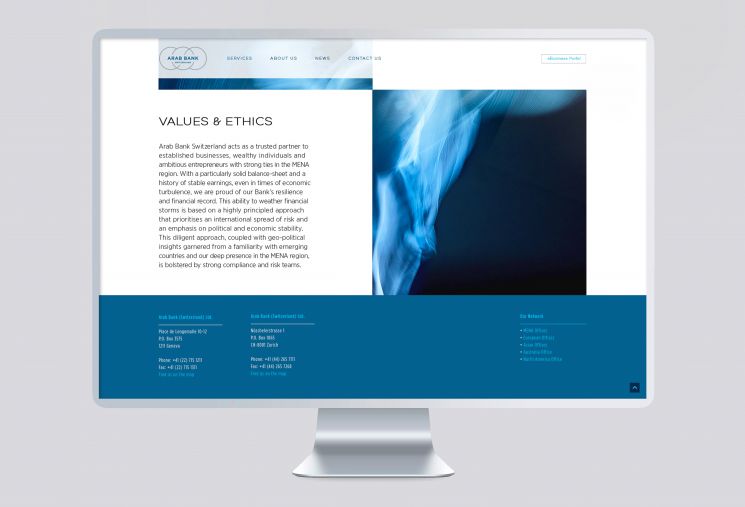Création du site web de l’Arab Bank. Déclinaison de l’univers visuel, réflexion et insertion du shooting photo autour de la danse. www.arabbank.ch webmaster © Yann&Co Photographe © Loris Von Siebenthal