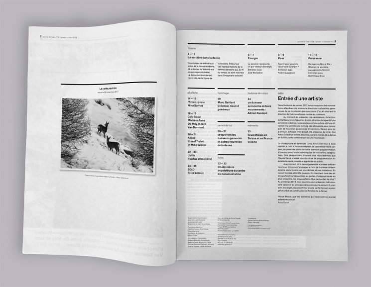 Design et mise en page du jounal trimestriel de l'adc, association pour la danse contemporaine.