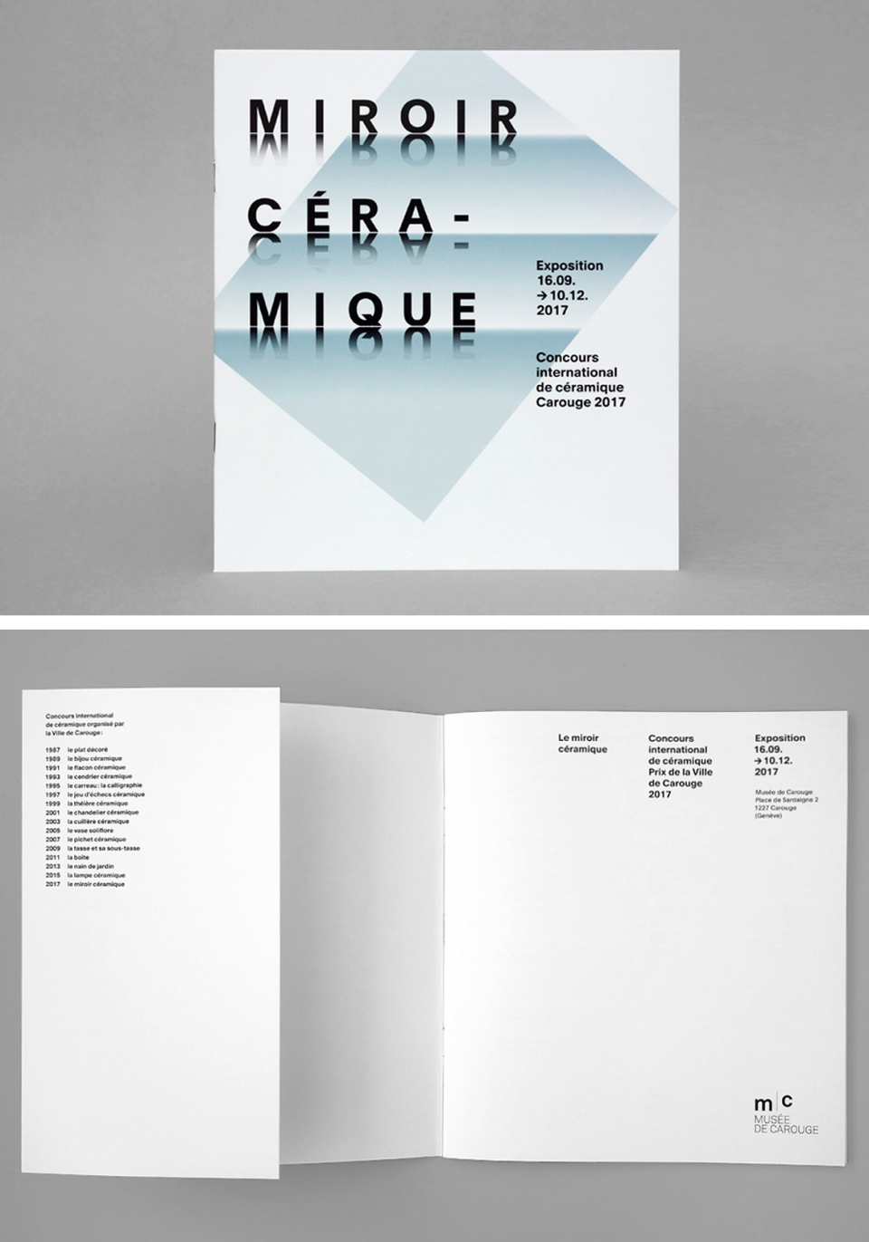 Création du visuel pour l'exposition «Le Miroir Céramique». Déclinaisons pour la muséographie et le catalogue.
