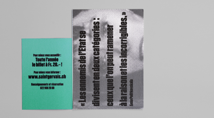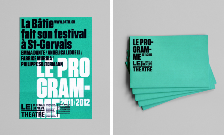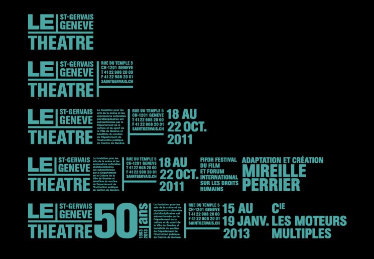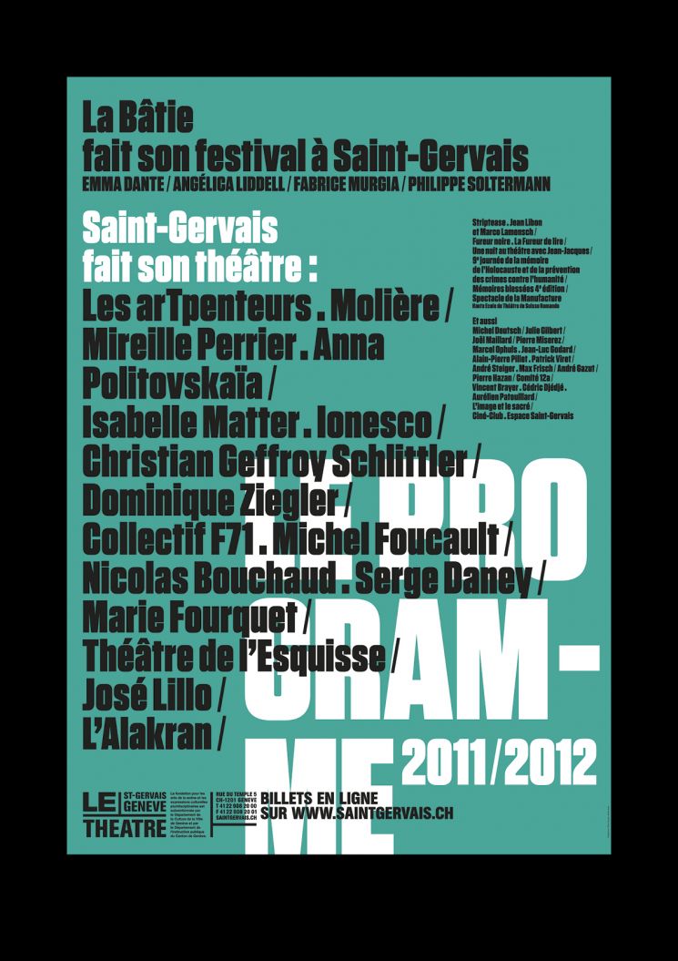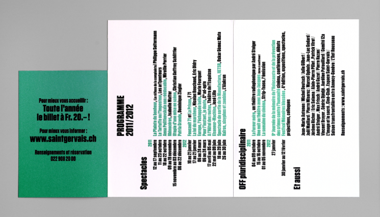 Création de la ligne graphique du Théâtre Saint-Gervais de Genève sous la direction de Philippe Macasdar. Collaboration avec François Canellas et Daniel Kunzi.
