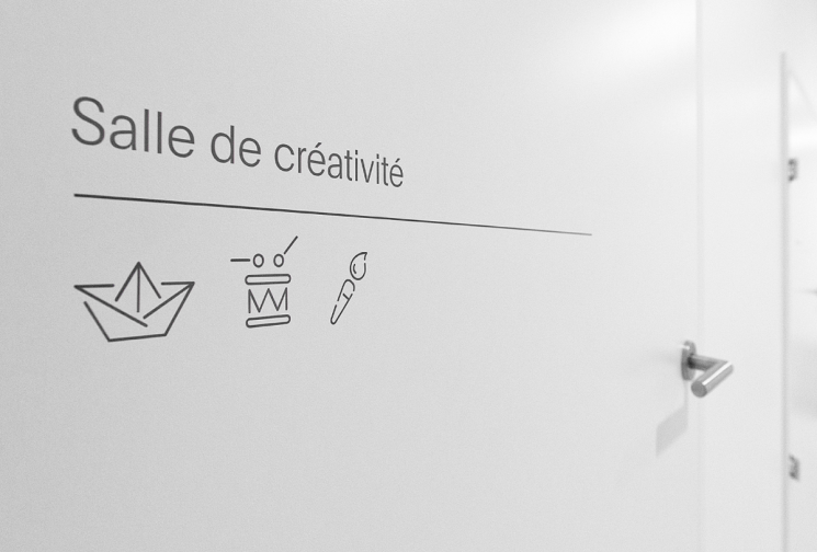 Signalétique externe et interne pour l'EVE Cité de Meyrin. Création de 45 pictogrammes et de 10 illustrations thématiques de portes. Céation et gestion du projet Silvia Francia, Daniel Kunzi. Collaboration de stage, Maurane Zaugg.